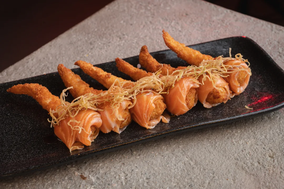 Camarão empanado na farinha panko, envolto em lâmina de salmão, finalizado com crisp de alho-poró e o molho da sua preferência: Tare, Molho de Ostra ou Molho Picante. Uma explosão de sabor em cada mordida! Contém 6 unidades.