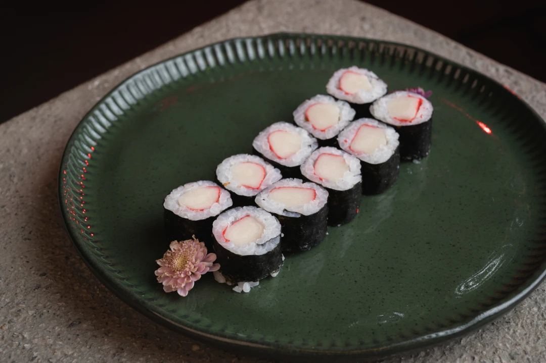 Rolo de arroz com alga por fora, recheado com atum